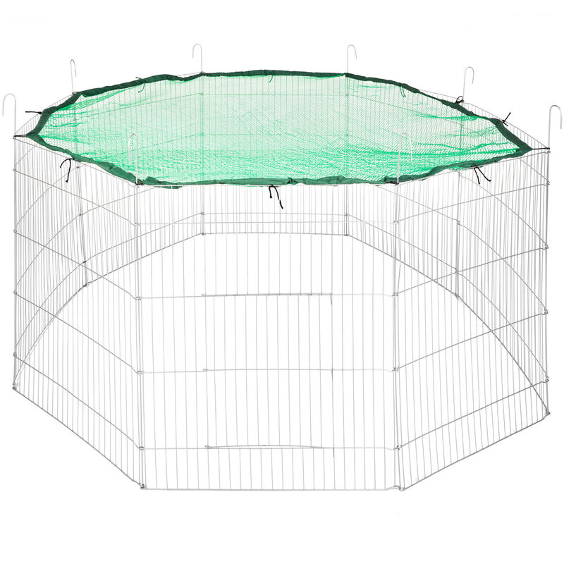 Nuestra práctica y espaciosa jaula para pollos es una opción perfecta como recinto al aire libre para tus pollos, gallinas, patos y otros animales pequeños, y los mantendrá cómodos. También es adecuada para aves grandes y se puede utilizar como aviario. Este gallinero está hecho de acero galvanizado de alta calidad para mayor durabilidad y tiene un techo 100% polietileno que es resistente al agua y a los rayos UVA, lo que brinda protección contra el sol, la lluvia, la nieve y otras condiciones climáticas. La puerta está equipada con una cerradura. El montaje es sencillo. Color: Estructura plateada + tejado gris Material: Estructura de acero galvanizado + tejado de polietileno (PE) Dimensiones: 2 x 2 x 1,92 m (ancho x profundo x alto) Sistema de cierre con cerradura Paredes de malla para gallinero Fácil montaje Material: Polipropileno: 100%