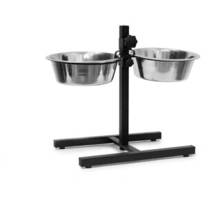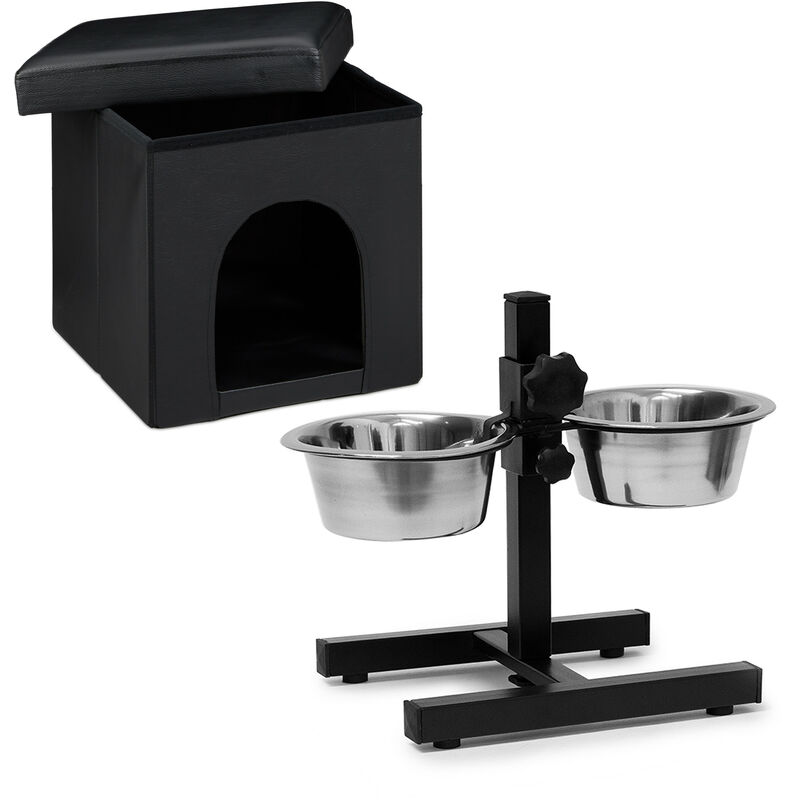 Set de 2 artículos para mascotas, Comedero doble xl, Altura ajustable, Perros-gatos, Taburete con casa para perro, Negro