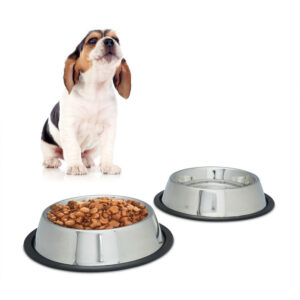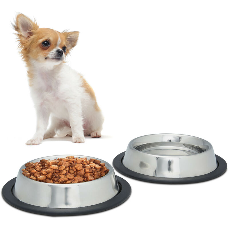 Set 2 Comederos Perro, Cuenco Agua, Comida, Antideslizante, Bebedero Acero Inoxidable Talla s, 200ml, Plateado – Relaxdays