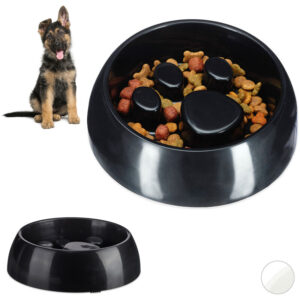 Relaxdays Pack de 2 Comedero Perro y Gato Antivoracidad Grande, Plástico, Negro, 6,5 x 23 cm