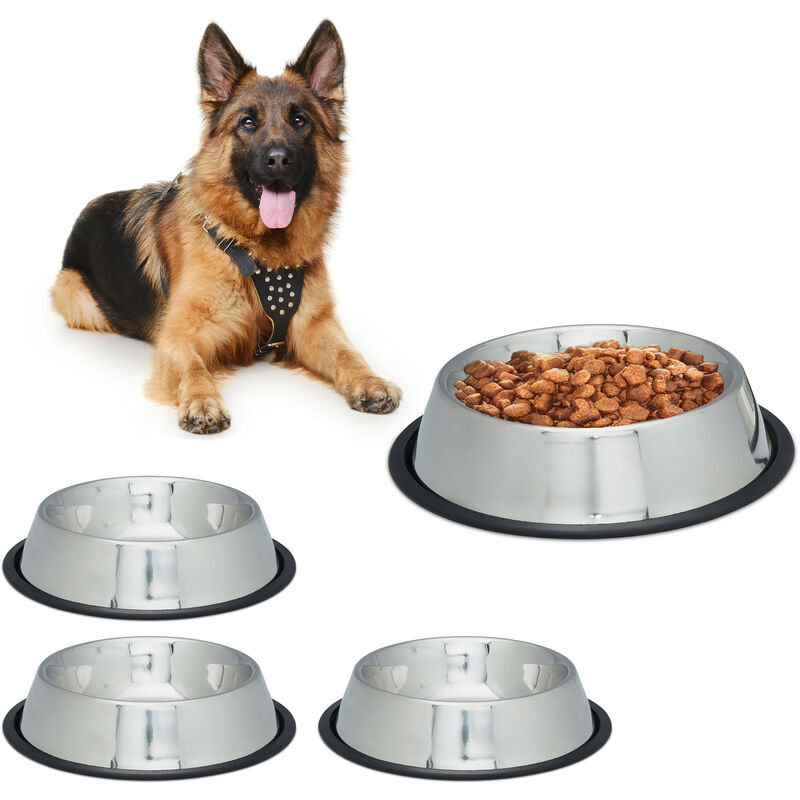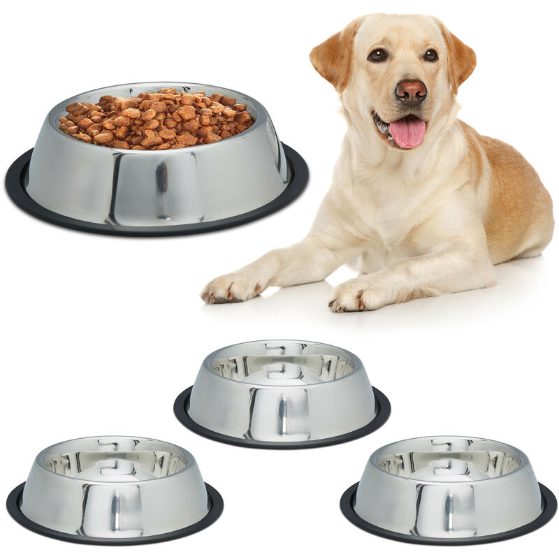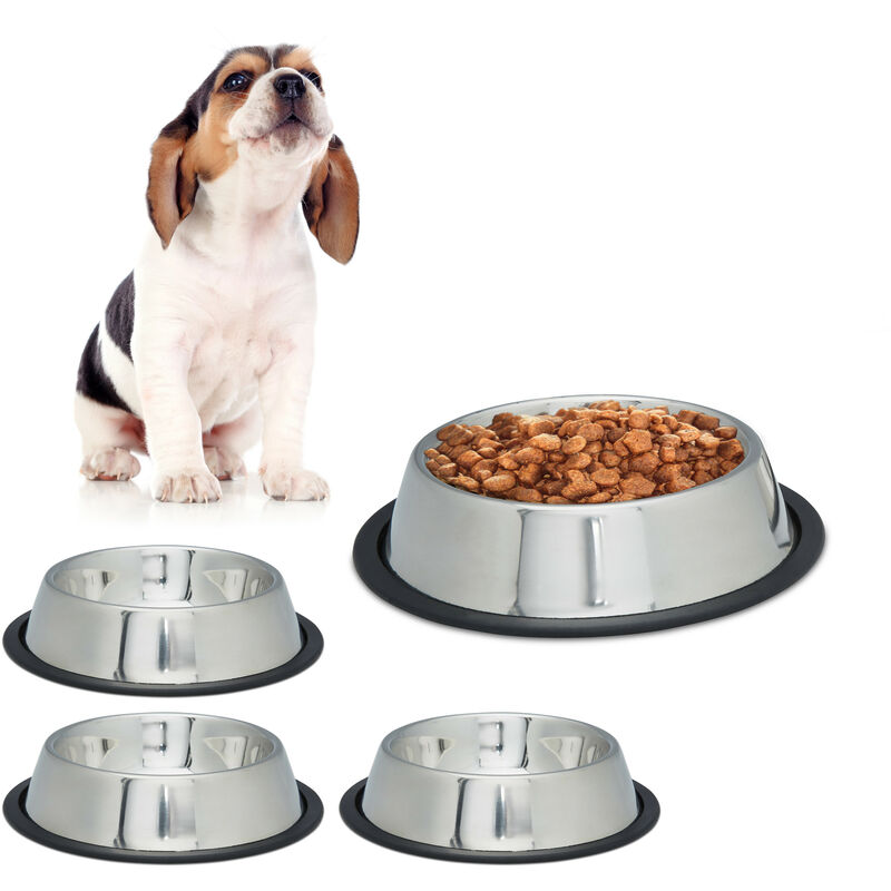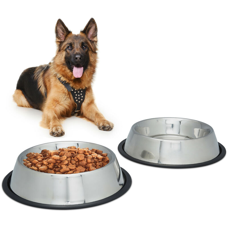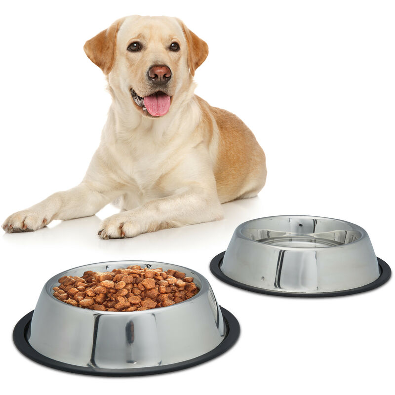 Set 2 Comederos Perro, Cuenco Agua, Comida, Antideslizante, Bebedero Acero Inoxidable Talla L, 0,75L, Plateado – Relaxdays