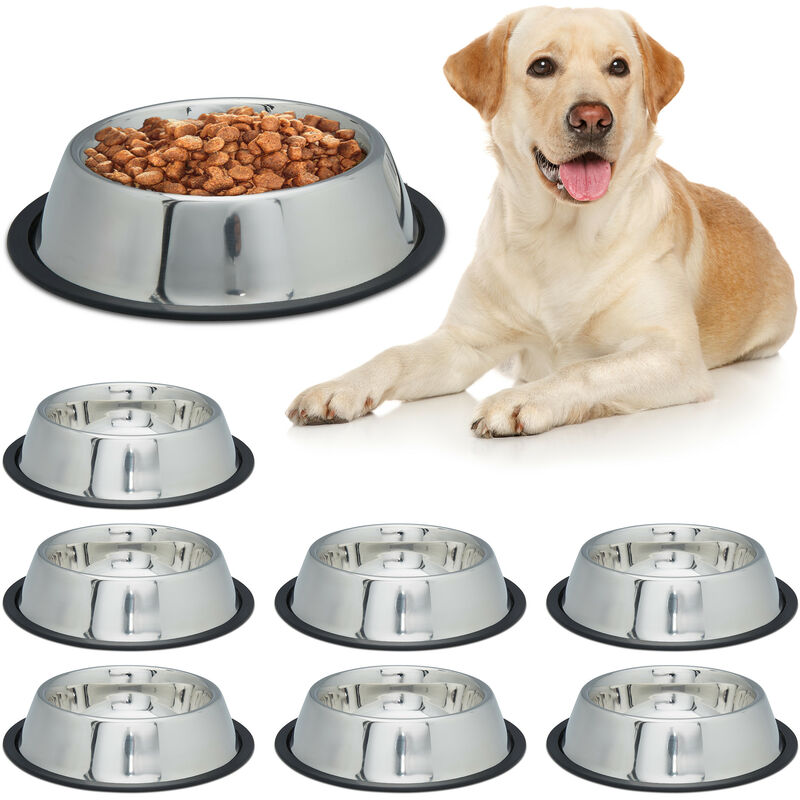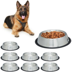 Set 8 Comederos de Perro, Tamaño xl, Cuencos Agua y Comida, Antideslizantes, Acero Inoxidable 1,25 l, Plateado