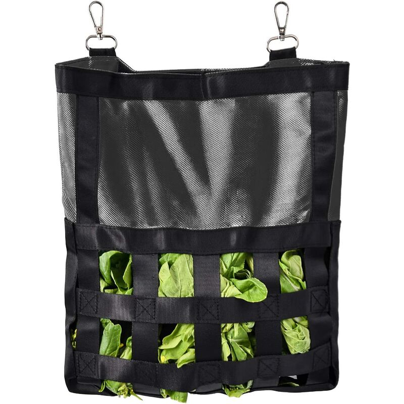 Comedero para conejos, cobaya, heno, comedero para conejos, chinchilla, bolsa de almacenamiento (negro)