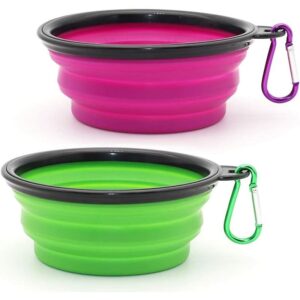 2 cuencos portátiles para perros, cuencos plegables para perros, cuencos de viaje para perros y gatos (350 ml, morado y verde)
