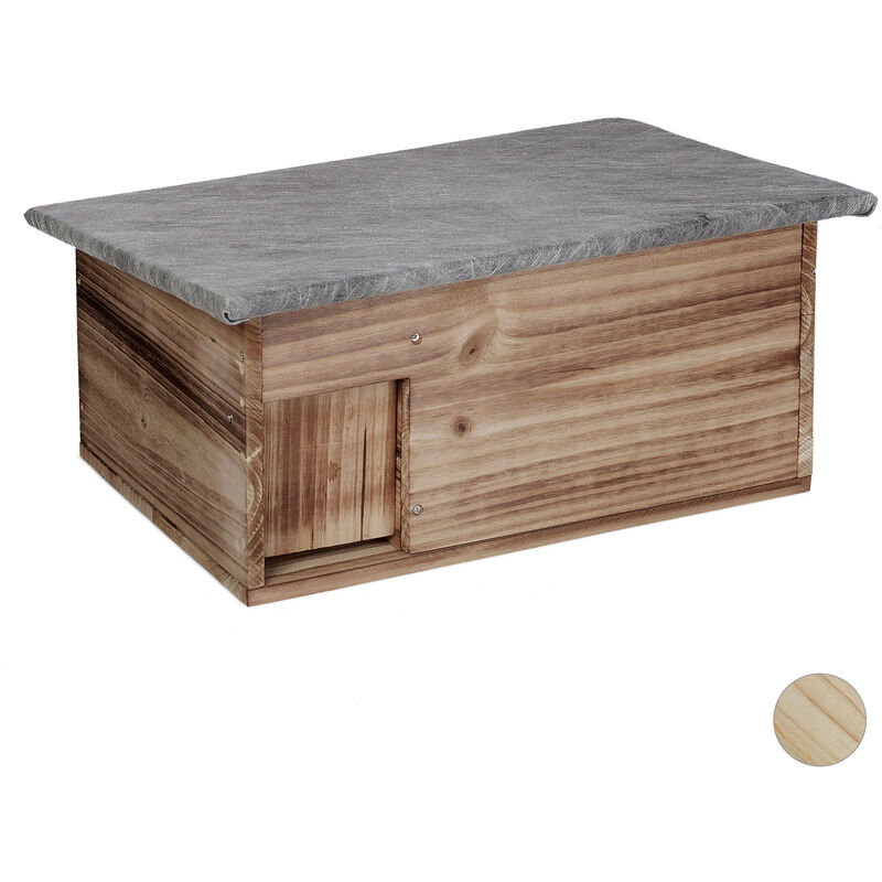 Casa Erizo, Refugio de Invierno, a Prueba de Gatos, Madera, 21 x 46 x 34 cm, Marrón Oscuro – Relaxdays