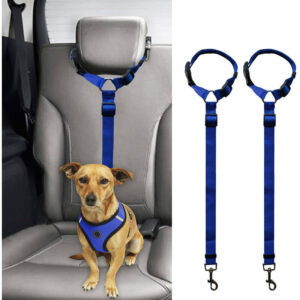 Cuerda de seguridad para coche para mascotas, cintur½n de seguridad para perros con anillo, cuerda de tracci½n del asiento trasero 2 piezas azul