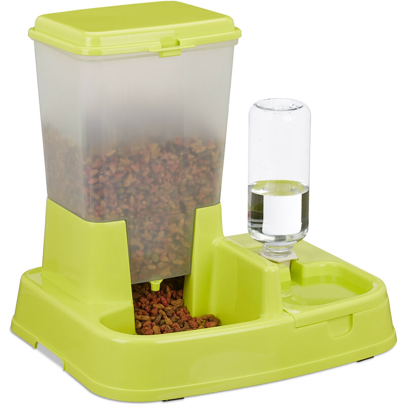 Comedero y Bebedero Automáticos, Perros y Gatos, 4 l, Plástico, Plato Comida y Agua, 34×34,5×27,5cm, Verde – Relaxdays