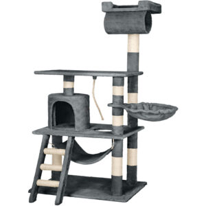 Atributos: Acogedor ÿrbol para gatos- El ÿrbol para gatos de varios niveles cuenta con una amplia entrada y mœltiples rejillas de ventilaci½n para facilitar el acceso y la observaci½n del mundo exterior. No s½lo es un gran lugar para esconderse y espiar, sino que tambi?n proporciona un lugar c½modo para que los gatos duerman. Regalos alegres para los gatos- El ÿrbol viene con 2 lindas pelotas de juguete para que los gatos jueguen durante horas. Ademÿs, la acogedora percha de felpa y las 3 plataformas con alfombras extrables ofrecen a los gatos el lugar ideal para tomar el sol y disfrutar de las vistas. Las alfombras son lavables y ayudan a mantener un aspecto ordenado. Nuestro ÿrbol es sin duda un regalo perfecto para sus gatos. Poste rascador de sisal funcional y rampa- Nuestro ÿrbol para gatos estÿ equipado con 3 postes rascadores envueltos en sisal natural para liberar la naturaleza rascadora de su gato. Ademÿs, una escalera adicional de sisal para trepar no s½lo permite al gato