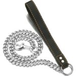 ¿De qué está hecha esta correa para perros?: Está muy pulida en una cadena de eslabones cubanos de acero inoxidable 316L con un mango de cuero genuino. ¡La cadena de eslabones cubanos de Miami es muy fuerte y dura, pesada, duradera, no se oxida ni se deslustra y garantiza muchos años de uso! ¡La hebilla es fácil de bloquear y desbloquear y es muy fuerte, por lo que incluso con 700 libras de fuerza no se puede desarmar! y 2 pies. ¿Quién necesita esta correa?: ¿Tiene un perro al que le gusta tirar o masticar? Si es así, ¡entonces esta correa de metal es perfecta! Las razas de perros activos como Cavapoo, Jack Russell, Rottweiler, Pitbull, American Bully, German Shepherd, Husky, Newfoundland, Belga Malinois, St. Bernard y English Bulldog pueden manejar razas rudas. ¿Qué es este canal? ¿cómo?: ya sea para entrenar o simplemente para pasear al perro, esta cadena es fuerte y pesada porque no está hueca.La artesanía hace que la superficie del campañol sea brillante, suave y cómoda. Nunca te