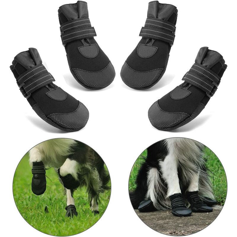 Material Premium: la parte superior de la bota está hecha de tela oxford impermeable, con un forro suave en el interior, muy cómodo para las patas, adecuado para paseos con perros, caminatas y viajes diarios, también adecuado para vendajes o patas lesionadas < p>Suelas suaves y antideslizantes: capaces de proporcionar tracción y proteger bien las patas del perro del pavimento, césped, losas, cubiertas, botes, sal de invierno, nieve, hielo, pisos de madera en interiores y otras superficies, operación Fácil y rápido de poner – Control del cierre mediante tira elástica ancha y ajustable, que también refleja la noche Talla referencia 3# – Ancho plantilla 5 cm. Error de asignación: 0,11 – 0,20 pulgadas. Estas botas son relativamente flexibles y espaciosas, por lo que es mejor un ajuste ceñido. Si las patas del perro tienen entre 2 tamaños y eliges el más grande, puedes intentar usar calcetines para perros dentro de las botas Tamaño interior (pulgadas) 3#: Ancho 1,97″/5 cm desde 6#: