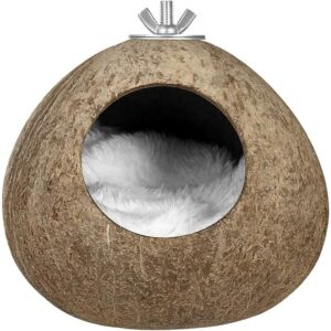 Suave y cÿlido: Nuestro nido de pÿjaros estÿ hecho de lona de alta densidad en el exterior y un cÿlido material de vell½n en el interior, es suave y c½modo. Esta choza para pÿjaros proporciona un refugio cÿlido para que tus adorables pÿjaros descansen, se escondan y jueguen. DiseÏo de doble capa: La hamaca de doble capa permite que los loros se muevan hacia arriba y hacia abajo libremente. Pueden jugar en la parte superior o descansar y esconderse en la parte inferior. Si bien sus pÿjaros estÿn calientes, tambi?n pueden reducir la presi½n de los pÿjaros y brindarles una sensaci½n de seguridad. Fÿcil de usar: La cama para loros estÿ equipada con una percha de madera, se puede montar rÿpidamente sin herramientas adicionales y la hamaca para pÿjaros se puede quitar y lavar a mano o a mÿquina. Informaci½n sobre tallas: El tamaÏo de la hamaca para pÿjaros es de 9 x 7,2 pulgadas, ideal para todo tipo de pÿjaros pequeÏos y mascotas, como loros, periquitos, agapornis, piel de tigre, cacatœa,