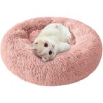 ¿MATERIAL DE ALTA CALIDAD?: La cama para perros está hecha de piel sintética de alta calidad, que es extremadamente suave, cálida y cómoda para sus perros y gatos. Está relleno de algodón PP suave y ecológico y proporciona a tu mascota el lugar perfecto para acurrucarse, descansar y relajarse. ?SUEÑO CÓMODO?: esta cama para perros con forma de rosquilla tiene un diseño circular rodeado de protuberancias alrededor del gato, lo cual es ideal para las mascotas a las que les gusta acurrucarse. Sus mascotas pueden acurrucarse en la cama para descansar cómodamente. El borde elevado de esta cama para perros contra la ansiedad brinda soporte para la cabeza y el cuello y puede ayudar a que sus perros se sientan seguros mientras duermen. ?SUELO ANTIDESLIZANTE? : Con puntos de goma antideslizantes en la parte inferior, no tienes que preocuparte de que se resbale en el suelo cuando tu perro corre emocionado hacia su cama. La cama no se desliza fácilmente cuando sus mascotas se acuestan sobre