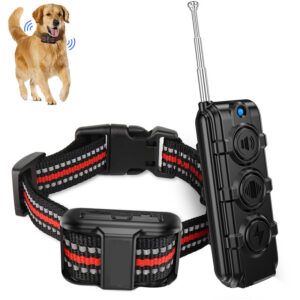 ?3 modos efectivos de entrenamiento para perros?Este collar para perros tiene 3 modos: vibración, sonido (1 – 8) y choque estático (1 – 16). Estos modos están diseñados para corregir el comportamiento del perro, como la agresión, hacer caca en el lugar equivocado, ladrar, etc. ?Collar de entrenamiento para perros con control remoto?El control remoto tiene un alcance de hasta 600 m, lo que le permite entrenar fácilmente a su mascota al aire libre (parque, jardín, playa, etc.) o en interiores. ?Sistema de entrenamiento para varios perros?Nuestro collar de entrenamiento puede funcionar en 2 canales para entrenar eficazmente a 2 perros al mismo tiempo. al mismo tiempo. ?Collar resistente al agua con pantalla LCD retroiluminada?El receptor del collar es resistente al agua IPX67, lo que le permite a su mascota tener más libertad durante las actividades al aire libre. Y el control remoto tiene una pantalla LCD retroiluminada que lo ayuda a entrenar a su perro todo el tiempo, incluso de