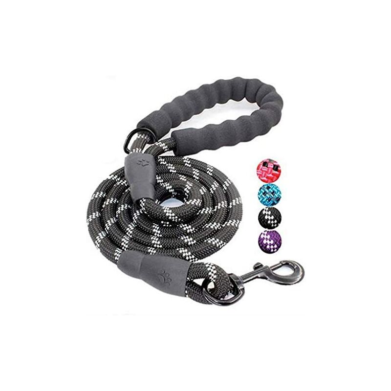 ?Fácil de usar?: El mango de la esponja es un material suave y cómodo para tus manos. Si tu perro corre de repente, no sentirás dolor en la mano. ?Seguridad?: Los reflectores cosidos a ambos lados de la correa se iluminan en la oscuridad y garantizan la mejor visibilidad al caminar de noche. ?Material de nailon de alta calidad?: la correa está hecha de nailon de alta calidad y es ideal para perros de tamaño mediano. El enorme mosquetón de rosca y las costuras muy estables también permiten un manejo robusto del perro. ?Función fuerte?: El diámetro de la correa del perro es de aproximadamente 0.04 pies. Tiene una resistencia a la tracción de 1000 libras, por lo que es más fuerte y más duradera que la cuerda general. Así, podemos entrenar con él tanto a perros pequeños como a perros grandes. ?Diseño ergonómico?: 150 cm de largo evita caídas al caminar; la correa es fácil de limpiar y se seca rápidamente. Después de caminar, simplemente lávese y cuélguelo para que se seque. Los perros