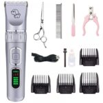 Paquete de tijeras de acero plateado B8 Fácil de usar, interruptor táctil, operación simple Pantalla de encendido LCD. Este cortapelos profesional para perros puede ser con cable o inalámbrico Batería incorporada, el cortapelos para mascotas dura 4 horas de uso continuo y 3 horas con una carga completa Las tijeras brindan un rendimiento de corte eficiente y duradero para que pueda lograr el corte de pelo perfecto para su mascota.