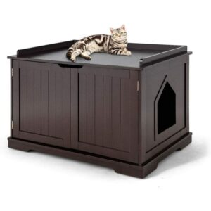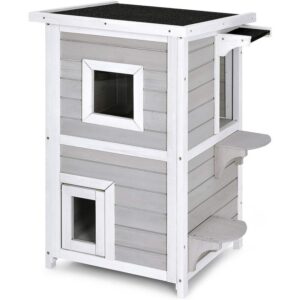 Atributo: -Maderial de alta calidad-La casa para gatos estÿ hecha de madera de alta calidad, resistente al ½xido y a la corrosi½n, saludable y segura. Larga vida garantizada. -Cumple con el hÿbito del gato-A los gatos les encanta el espacio cerrado y pequeÏo, este gabinete para gatos puede proporcionar tales condiciones.Proporcione un hogar cÿlido, c½modo y seguro para su gato. -Prÿctico-La casa de madera no solo es adecuada para gatos, sino tambi?n para mascotas pequeÏas como conejos y hÿmsters. La superficie de la casa ya estÿ pintada, por lo que es impermeable, fÿcil de limpiar. -Con puerta-La casa tiene una puerta pequeÏa con un agujero en la puerta para que entren los gatos. Mango de metal para facilitar la apertura y cierre de la puerta. -Aplicaci½n de escenarios mœltiples-La casa del gato es adecuada para uso en interior y exterior, puede colocarla en el jardn o patio y dejar que el gato juegue libremente. La instalaci½n es muy conveniente debido a la instrucci½n detallada de