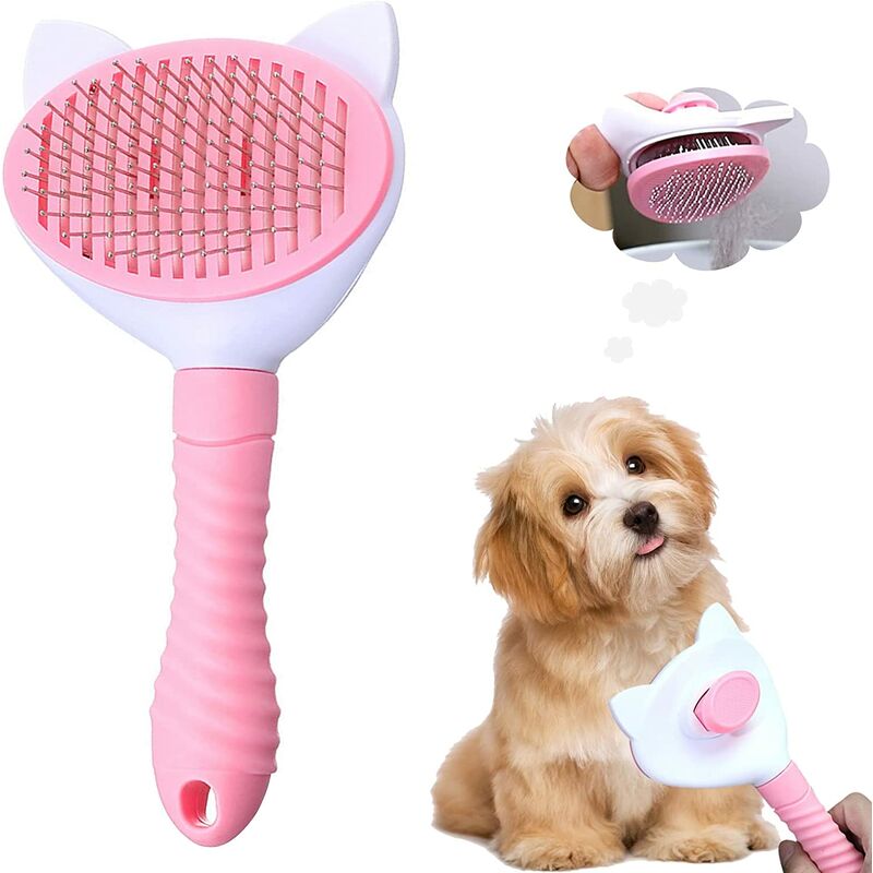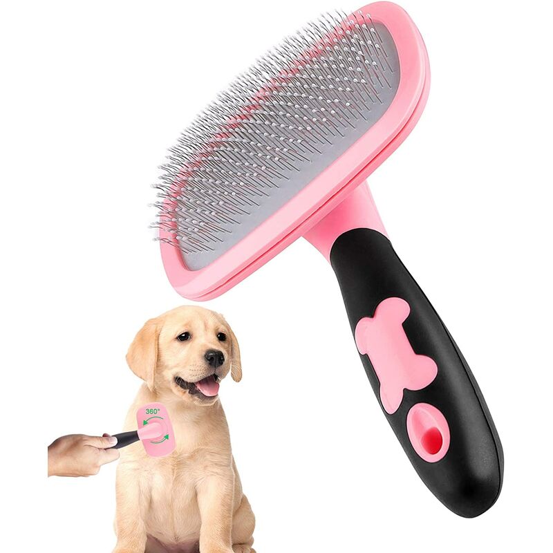 Bonito diseño de bola de goma: las cerdas son líneas finamente curvas con partículas de masaje que penetran bien en el interior de la piel y no rayan la piel de tu mascota. Mango antideslizante: el cepillo de aseo para perros y gatos está diseñado con un mango cómodo y ergonómico que reduce la presión de la mano. El mango extendido especialmente diseñado garantiza un agarre seguro y un aseo sin esfuerzo. CEPILLO DE MASAJE SEGURO Y CÓMODO: este cepillo para perros y gatos no solo elimina suavemente el pelo suelto, la suciedad y los enredos de las mascotas, sino que también masajea el pelaje de su mascota para mejorar la circulación sanguínea. FÁCIL DE LIMPIAR: simplemente presione el botón Atrás y las cerdas suaves se retraerán en el cepillo y todos los pelos permanecerán en una superficie plana, simplemente retire los pelos para limpiarlos. Adecuado para mascotas de pelo largo y corto: adecuado para muchas mascotas como dóberman, pastor alemán, labrador, gato del Himalaya, etc. Perros