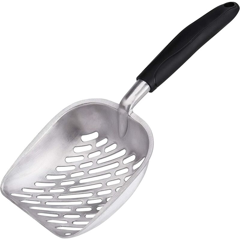 [Material]: la pala para gatos está hecha de plástico PP duradero, con un mango conveniente, limpio, hermoso y duradero. La superficie súper suave de la hoja está hecha con tecnología de desbarbado, lo que garantiza un uso y una limpieza seguros. fácil, mayor resiliencia y fácil limpieza del cubo de basura [Uso]: no vuelvas a pasar un tiempo interminable limpiando la basura. Esta robusta cuchara para arena para gatos mide 27 cm de largo y 5 cm de profundidad y está diseñada para recoger piezas grandes y eliminar más arena a la vez. Equipado con un cómodo mango antideslizante de 17 cm, puedes limpiar tu cubo de basura en segundos [Duradero]: a diferencia de la mayoría de las paletas de arena para gatos de plástico, que son fáciles de doblar y romper, nuestras paletas de arena para gatos de metal están hechas de aluminio fundido resistente para una mayor durabilidad y una resistencia increíble. El mango ergonómico y endurecido te da un toque más cómodo, para que puedas colar la arena