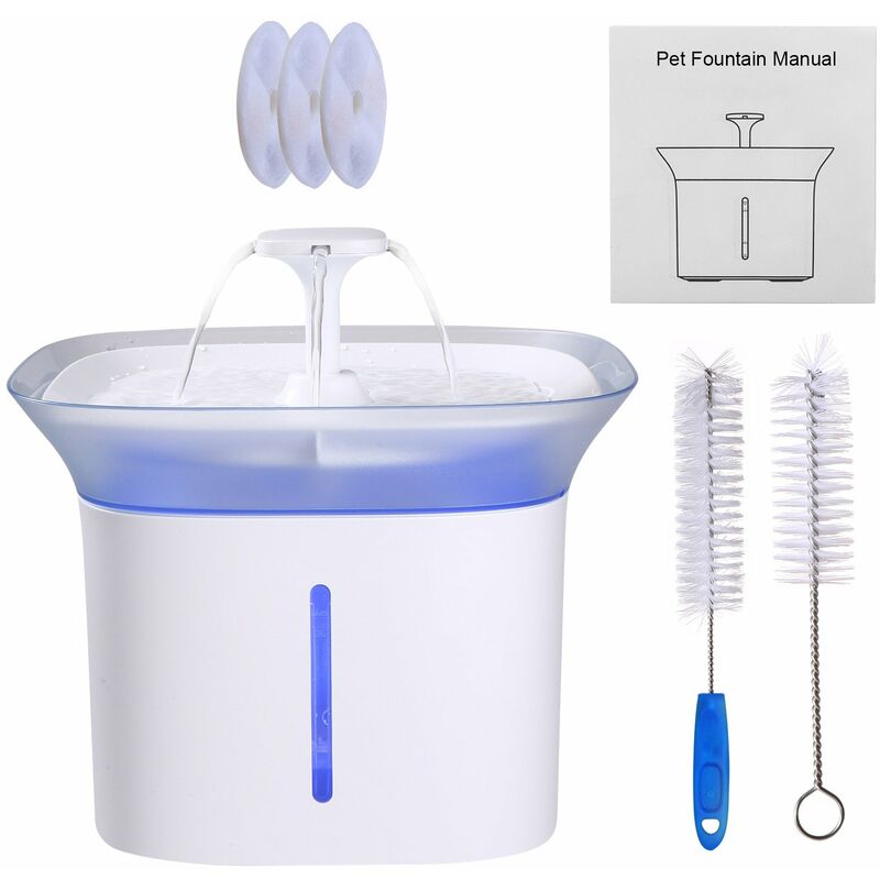 «Descripción: Fuente de agua de gato con capacidad de agua de 2L/70 oz, satisfacer las necesidades de bebida de gatos, perros, pájaros y otros animales pequeños, sin necesidad de reponer el agua con frecuencia. Proporciona agua fresca y limpia a sus hermosas mascotas. Una ventana de nivel de agua transparente con luz LED le recuerda que agregue agua a tiempo. Características: [Útil] La fuente de agua del gato con agua que fluye puede fascinar plagas. A través de la mayor oxigenación, mantenga el agua fresca. [Filtro de carbono activado] El dispensador de agua CAT incluye un filtro de agua de carbono de 3 piezas. No solo filtra el cabello, las impurezas, sino que también elimina el olor, suaviza el agua dura para mejorar el sabor. [Bandeja de almacenamiento de agua] La bandeja superior tiene una función de almacenamiento de agua, en el estado de falla de energía, el almacenamiento de agua restante también puede permitir que las mascotas continúen bebiendo agua. [Nivel de agua claro]