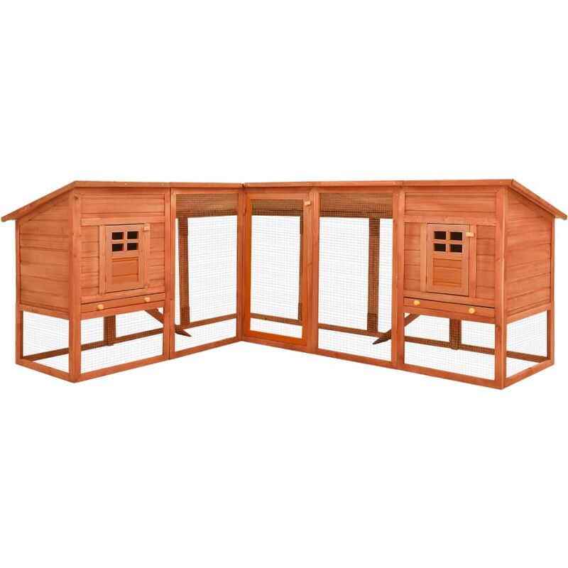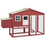 Este gallinero de madera proporciona un lugar acogedor y cómodo para que los animales pequeños, especialmente las gallinas, se relajen. La jaula para pollos presenta un diseño integral con una casa, un ponedero y un espacio muy grande con malla de alambre de acero galvanizado para vigilar a tus aves. También asegura que puedas vigilar a los pollos y les permite obtener suficiente aire fresco. El gallinero está construido con una estructura de madera maciza de abeto, lo que lo hace duradero. Además, el techo inclinable está cubierto con tela resistente al agua y evita la lluvia. El cubículo ofrece el área perfecta para dormir. Además, la rampa antideslizante conduce desde el piso inferior al piso superior, y la bandeja extraíble facilita la limpieza. Este gallinero es perfecto para tus mascotas en el jardín. Color: Rojo y blanco Material: Madera maciza de abeto, madera contrachapada, acero galvanizado Dimensiones totales: 191 x 67 x 117 cm (ancho x profundo x alto) Dimensiones
