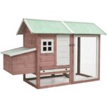 Este gallinero de madera de alta calidad ofrece un espacio cómodo y agradable donde podrán relajarse tus pequeños animales; sobre todo gallinas o pollos. La construcción de malla de alambre de hierro asegura que puedas ver a las gallinas y permite que reciban suficiente aire fresco. El gallinero está construido con estructura de madera de alta calidad que tiene una duración de años. Mientras que el techo verde evita la lluvia, el acogedor cubículo se convierte en el área perfecta para dormir al mismo tiempo. Una rampa de fácil ascenso conduce desde el nivel del suelo inferior al nivel superior. Una bandeja extraíble facilita la limpieza. Las puertas se cierran fácilmente y se cierran con pestillos de perno. Este gallinero es fácil de montar. Color: Moca y verde Dimensiones totales: 170 x 81 x 110 cm (largo x profundo x alto) Dimensiones interiores: 117 x 61 x 104 cm (largo x profundo x alto) Dimensiones de la caja de huevos: 52 x 38 x 34 cm (largo x profundo x alto) Material: