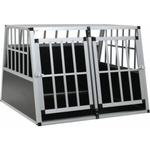 Esta jaula de perro contribuye a un viaje seguro y cómodo para su perro y para usted. Es adecuada para el uso en el maletero de su coche. Esta casa de perro está hecha de aluminio y MDF, que es duradero y fácil de mantener. Nuestra jaula está diseñada con juntas de plástico en las esquinas para evitar cualquier lesión a su mascota. La innovadora construcción de la caja asegura que su perro pueda mirar a su alrededor y pueda respirar aire fresco. El diseño de puerta única hace que sea más fácil entrar y salir. Nuestra jaula es ligera y fácil de transportar en su coche. Este artículo es fácil de montar. Advertencia: Aconsejamos medir su coche para evitar una situación en la que la jaula del perro no quepa en el coche. Color: Plateado Material: Aluminio y MDF Dimensiones: 54 x 69 x 50 cm (anchura x profundidad x altura) Ligero y fácil de transportar Con juntas de plástico en las esquinas Adecuado para el uso en el maletero del coche Presenta 1 puerta SKU: 170666