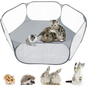 Esta jaula para animales pequeños ofrece un espacio cerrado espacioso y seguro para que tus mascotas hagan ejercicio, jueguen y descansen. Material práctico: Hecho de suave tela no tejida, el corralito para animales pequeños es transpirable y repele el agua, por lo que será un lugar cómodo donde tus mascotas puedan quedarse. Estructura robusta: Las estructuras de hierro de la jaula de mascotas garantizan su solidez y estabilidad. Diseño compacto: La valla para mascotas rectangular no ocupa demasiado espacio, pero ofrece un amplio espacio para que tus amiguitos corran mientras permanecen seguros dentro de un espacio limitado. Adecuada para animales pequeños: Esta valla para mascotas ofrece un excelente lugar de juegos para animales pequeños como cachorros, gatitos, conejos, erizos, hámsteres, cobayas, etc. Color: Negro Material: Hierro, tela no tejida (100% poliéster) Dimensiones: 105 x 34,5 x 45 cm (largo x ancho x alto) Requiere montaje: Sí SKU: 343148