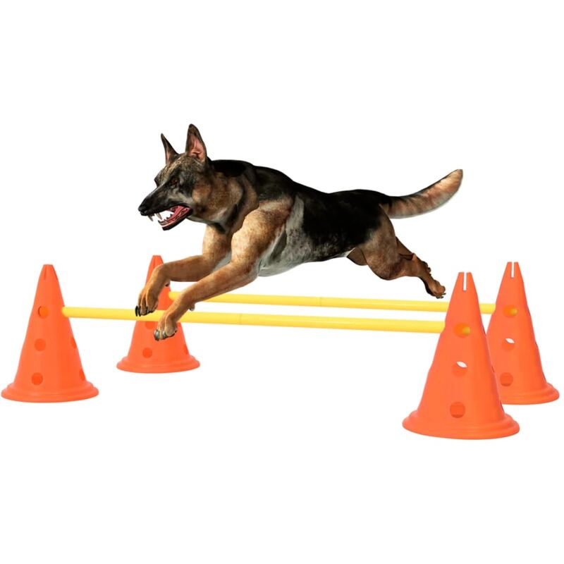 Este conjunto de obstáculos para actividades de perros fomenta la necesidad natural de hacer ejercicio de tu perro y lo hace más saludable. Este equipo de agilidad para perros contiene 4 palos y 4 conos, que ayudan a mejorar la concentración, la sensación corporal y la coordinación. Simplemente conecte el poste en el orificio del cono. Además, puedes elegir la altura según tus necesidades, por lo que es adecuado para perros de todas las edades y tamaños. Color: Naranja y amarillo Material: PE Dimensiones del cono: 20 x 32 cm (diámetro x alto) Longitud del palo: 50/54 cm Requiere montaje: Sí La entrega incluye: 4 x Postes 4 x Cono