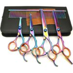 Funda protectora de cuero negro; el guante: todas las herramientas se pueden insertar, sin sobrellenado, sin desactivación, limpio y hermoso. Diseño elaborado e inusual: todas las herramientas de corte tienen puntas redondeadas para evitar que los animales se lastimen. Todas las tijeras para animales están equipadas con bordes afilados, que también ayudan en el área de recorte. Todas las tijeras tienen una forma ergonómica para una máxima comodidad y reducen la fatiga de la mano después de un uso prolongado. Todas las tijeras agrave; pieles tienen una almohadilla de silicona en el mango para evitar pellizcos accidentales de los dedos y para evitar que sus manos se dañen. Nota: * Por favor, no corte el aire * Acero inoxidable de alta calidad;, alta nitidez;. Si está utilizando las tijeras de aseo para perros, debe tener cuidado; el seacute; curiteacute; * Manténgalo limpio después de su uso, se puede lubricar; si está neacute; requerido * Tenga cuidado con las tijeras de aseo para