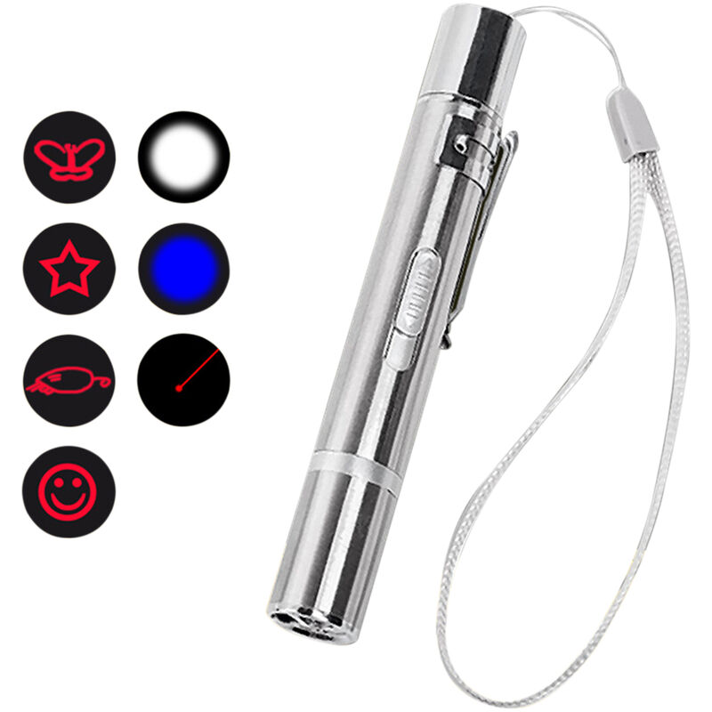 «Descripción: Un gran mascota burlas juguete interactivo para su perro y el gato precioso, se puede interactuar sin fin con sus queridas mascotas, haciéndoles hacer ejercicio y divertirse sin esfuerzo. Muy grandes juguetes para sus perros y gatos que pueden proporcionar diversión sin fin. Características: [7] La ??mejora en 1 4 patrones son más clara y atractiva para perseguir gato. Y proporciona la luz violeta, blanco, rojo para diferentes propósitos. [Botón de control] diseño del botón Sólo diapositiva, puede deslizarse fácilmente interruptor para obtener diferentes modos de luz, no tiene que mantener pulsado el botón todo el tiempo. [Práctica] Puede utilizar la luz para encontrar la orina del perro, manchas de mascotas, chinche, y el dinero falso. Linterna para el alumbrado de emergencia a casa. [USB de recarga] No hay necesidad de cable de carga, de carga rápida a través de varias tomas USB (banco de potencia, equipo, cargador de coche). [De alta calidad] de plata superior de