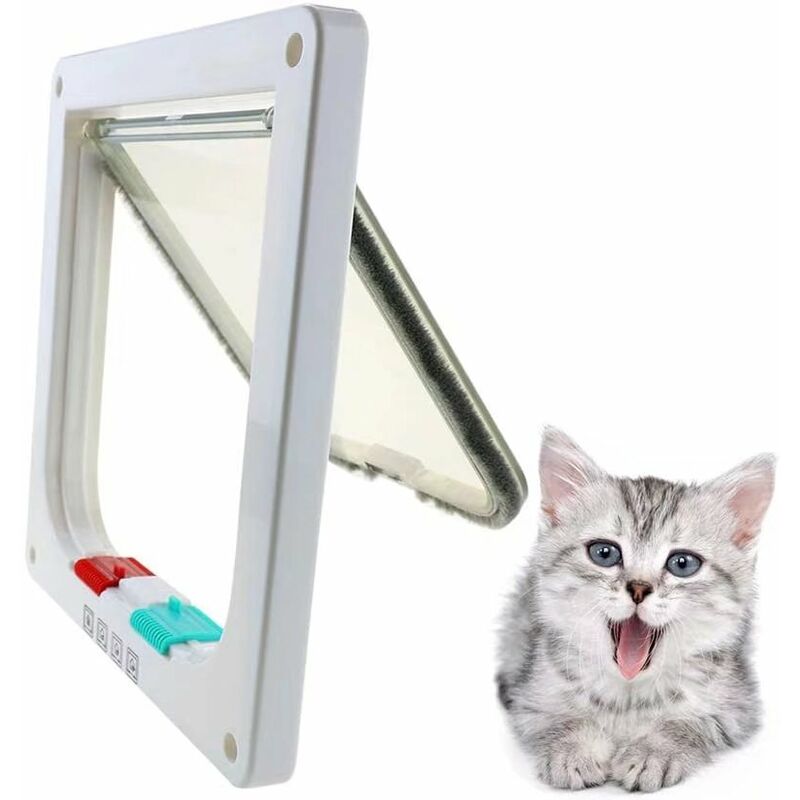 Opciones disponibles: color: negro y blanco.. Seguro y cuidado: la solapa transparente deja que las mascotas vean a través de la puerta. El sello exterior de lluvia es impermeabilizarla. La tira de cepillo elimina el ruido del cierre de la puerta. El control inteligente de 4 vías de la puerta ofrece al gato la mayor libertad. Borde interior de la estructura de cromo pulido, para que no se dañe. Modo de apertura de 4 direcciones: la puerta abatible se puede personalizar con 4 modos de apertura: fuera, dentro y fuera, y totalmente bloqueada. Proporciona tanta libertad al gato como quieras. Fácil de instalar: los clavos y alfombrillas incluidas en el set hace que sea fácil instalar en ventanas, puertas, armarios, paneles, paredes, etc. De excelente calidad: hecho de material ABS, resistente a la intemperie, de superficie es suave y duradera. Tamaño del marco de la puerta exterior S: 20 * 19 * 2 cm M: 20 * 19 * 5,5 cm L: 25 * 23,5 * 5,5 cm XL: 27,7 * 25 * 5,5 Tamaño del marco de la puerta