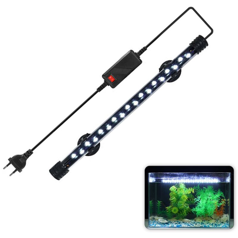 La luz LED para peceras le brinda un soporte de luz para acuarios más brillante y seguro. Características: Resistente al agua y seguro: IP68 a prueba de agua, esta luz LED se puede sumergir completamente bajo el agua. La luz LED para acuarios es segura y no causa ningún daño a las personas ni a los peces. Fácil de arreglar: esta luz es muy fácil de colocar en la pecera con 2 ventosas (incluidas), hacen que sea muy fácil de colocar en la pecera. Este artículo se puede colocar en el fondo de la pecera, en la parte superior de la pecera y en cualquier lugar que no coloque en la pecera para decorar su pecera. Más brillante y que ahorra energía: el chip de luces LED 5730 es más brillante y está diseñado para un rendimiento confiable a largo plazo, ahorro de energía y seguridad. Adecuado para apreciar la pecera por la noche. Con las luces del acuario, su acuario será más espectacular y brillante. Tres fuentes de luz Opcional: luz azul y blanca, fresca y brillante, apta para el crecimiento