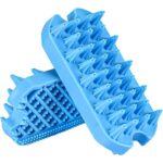 ?Diseño de doble cara?El diseño innovador del cabezal del cepillo de doble cara mejora la eficiencia de limpieza del cepillo para pelo de perro. Puedes utilizar las cerdas largas de la parte delantera para eliminar el pelo de perros o gatos o bañar a las mascotas, y las cerdas cortas de la parte trasera para limpiar el pelo suelto pegado a la ropa o al sofá. ?Cerdas mejoradas?Hechos de material de silicona de alta calidad, estos cepillos para perros son duraderos, no tóxicos y ecológicos. 32 cerdas suaves, flexibles y cónicas, de 15 mm de largo, cada una contiene 3 dientes de masaje, lo que le permite pellizcar su cabello sin dolor en la ducha y el triple de efecto de limpieza. ?LIMPIEZA PROFUNDA Y MASAJE? Las cerdas de 15 mm de largo están calculadas científicamente y con precisión para eliminar profundamente los pelos sueltos de las mascotas de pelo largo o corto. Elimina eficazmente el pelo suelto rápidamente, brinda enfriamiento y relajación para las mascotas en climas cálidos,