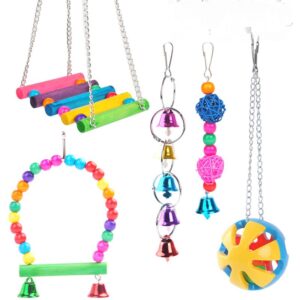 MATERIALES PREMIUM: El columpio de pollo para mascotas está hecho de madera natural, cuentas de madera de colores y herrajes. Inodoro, sin pegamento, sin cables, sin plástico y ecológico. Peligro para que las mascotas mastiquen y jueguen, es duradero y tiene una larga vida útil. (1) BONITO COLOR: Las coloridas cuentas de madera son muy brillantes y pueden atraer el interés de las mascotas. Las gallinas pueden saltar sobre ella y la superficie plana de la escalera mantiene a las gallinas en equilibrio. Lugar de descanso ideal: El lugar ideal para relajarse, descansar sus patas de pollo y al mismo tiempo ofrecerles a sus pollos una oportunidad saludable para hacer ejercicio.