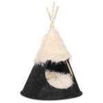 La Casa Tipi para gatos Tipi Cat será el lugar perfecto para el descanso de tu gato donde podrá relajarse; esconderse; dormir; sentirse seguro y protegido. Tiene una altura de 65cm; ideal para que tu felino juegue o estire su cuerpo.Esta casita tiene un diseño sofisticado; con forma de Tipi; que aportará un toque acogedor a tu hogar. Está confeccionada en tejido de poliéster y lana sintética; en color negro y beige; para ser un cálido y confortable lugar de refugio. Además; incluye en su interior un cojín de poliéster; pelo sintético beige; para que tu felino descanse cómodamente.