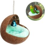 Hecho de cÿscara de coco natural, innovadora y ecol½gica. Diÿmetro de la cÿscara de coco: 12 cm, la longitud de la cadena es de aproximadamente 8 cm. Cavidad perfecta, alfombrillas de regalo (colores aleatorios). Caractersticas: colgante, protecci½n del medio ambiente, suministros para mascotas. Adecuado para uso en interiores y exteriores. Los juguetes c½modos y las pruebas de sueÏo pueden aliviar el estr?s de los animales y darles una sensaci½n de seguridad. Nœmero de envos: 1 pieza