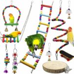 El paquete contiene 4 juguetes de campana, 1 scooter de juguete, 2 columpios de hamaca para colgar pÿjaros, 1 plataforma de soporte para bajos, 1 hamaca de escalera y 1 escalera giratoria de loro con cuentas. Satisfaga las diversas necesidades de Los loros se divierten. Mantenga su cuerpo y mente saludables, los juguetes coloridos pueden atraer fÿcilmente a sus mascotas. El ave mastica, trepa y juega con juguetes para poder hacer ejercicio y mantenerse saludable. evitar el aburrimiento, la depresi½n y la ansiedad. Mantener la salud mental de las aves. Seguro y de alta calidad, a todo tipo de pÿjaros les gusta masticar y picotear. Los juguetes para masticar estÿn hechos de madera natural ecol½gica y teÏidos con colorante alimentario. Las aves pueden masticar con confianza y mantener sus picos saludables. Fÿciles de usar e instalar, todos los columpio vienen con un gancho de metal m½vil. Por lo tanto, es fÿcil conectar el gancho de acero a la parte superior de la jaula para mascotas.