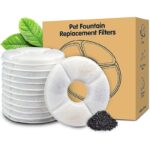 El tamaÏo del filtro es de 5 x 5 pulgadas, el diÿmetro del crculo interior es de 1,45 pulgadas. Compatible con la fuente para mascotas y se adapta a cualquier fuente para mascotas. otras fuentes para mascotas del mismo tamaÏo, verifique el tamaÏo antes de comprar. Carb½n activado de alta calidad, suficiente para un uso de 6 a 60 minutos. 12 meses. Carb½n activado y resina de intercambio i½nico para filtrar el cabello y la suciedad, eliminar olores y suavizar el agua para un mejor sabor del agua. Se recomienda reemplazarla cada 2 a 4 4 semanas para mantener el agua limpia y fresca. Enjuague antes utilizar para evitar que el polvo de carb½n activado caiga al agua.