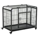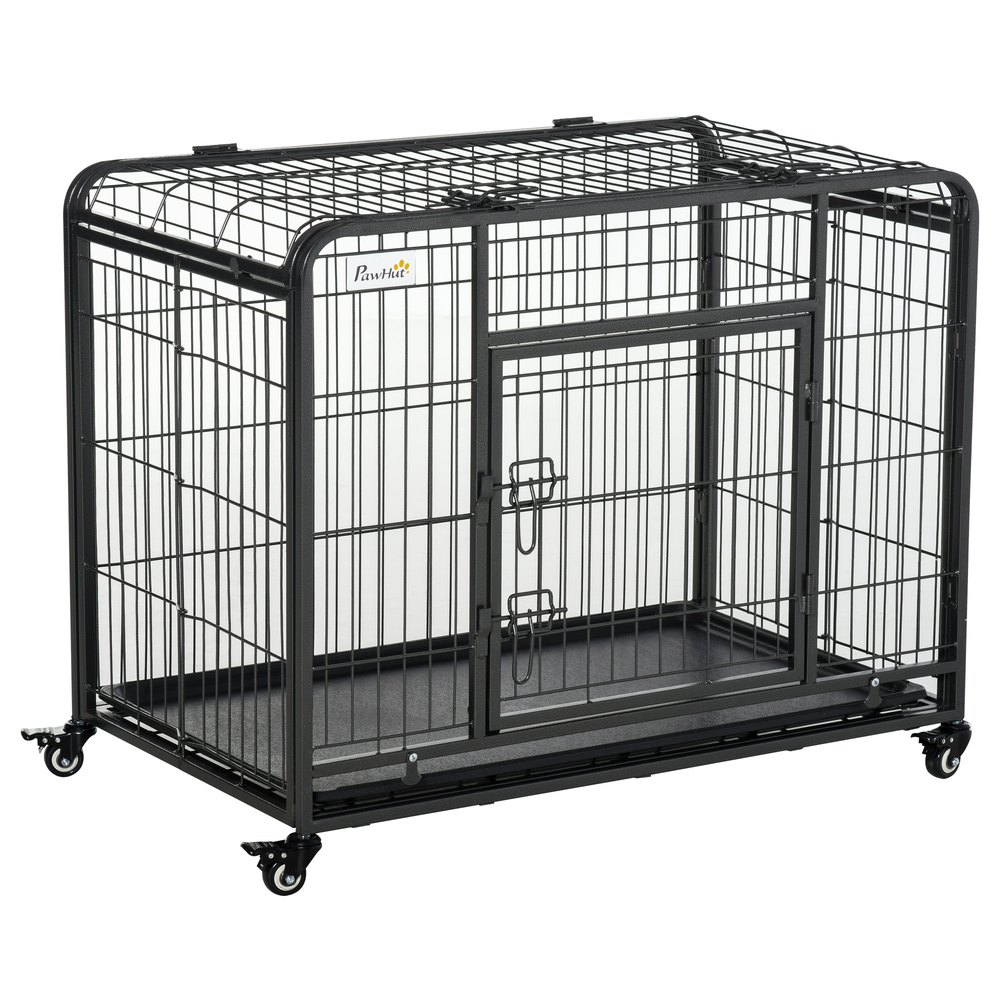 ¿Buscas una jaula para transportar cómodamente a tu perro? PawHut tiene la jaula transportín ideal para tu amigo peludo.Cuenta con un asa de transporte y 4 ruedas; para que no tengas que levantar tu mascota a peso y evitar movimientos bruscos.Además; cuenta con una bandeja extraíble que facilita su limpieza y la parte superior puede abrirse; para interactuar de forma directa con tu perro.Ideal para proteger a tu mascota; tanto en interiores como exteriores.Características:- Con sistema de seguridad para fijar la bandeja extraíble y que no se deslice de forma accidental.- Gran puerta de acceso; para facilitar la entrada y salida de tu mascota; con 2 pestillos de seguridad.- Las 4 ruedas cuentan con freno para poder inmovilizar la jaula.- La bandeja extraíble facilita la limpieza de esta jaula transportín.- La parte superior de la jaula también puede abrirse.- Esta jaula se pliega de forma fácil.Tan sólo tendrás que quitar la rejilla y bandeja inferior y el panel superior.- Apta para perros grandes; medianos y pequeños (debe cerciorarse de que las medidas se corresponden con las adecuadas para el tamaño de su animal).- Se precisa de un montaje rápido y sencillo sin necesidad de herramientas.Especificaciones:- Color:gris oscuro.- Material:metal y PP.- Medidas totales:125x76x81 cm (LxANxAL).- Medidas de la bandeja extraíble:119x74x3 cm (LxANxAL).- Tamaño de la puerta:54×56 cm (LxAL).- Capacidad máxima de carga:80 kg.- Apta para perros de distintos tamaños.