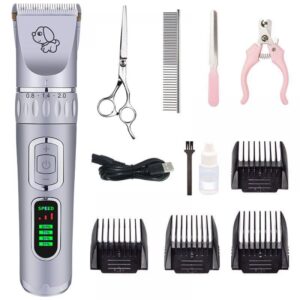 Conjunto de dos piezas B8 negro Fácil de usar, interruptor táctil, operación simple Pantalla de encendido LCD. Este cortapelos profesional para perros puede ser con cable o inalámbrico Batería incorporada, el cortapelos para mascotas dura 4 horas de uso continuo y 3 horas con una carga completa Las tijeras brindan un rendimiento de corte eficiente y duradero para que pueda lograr el corte de pelo perfecto para su mascota.