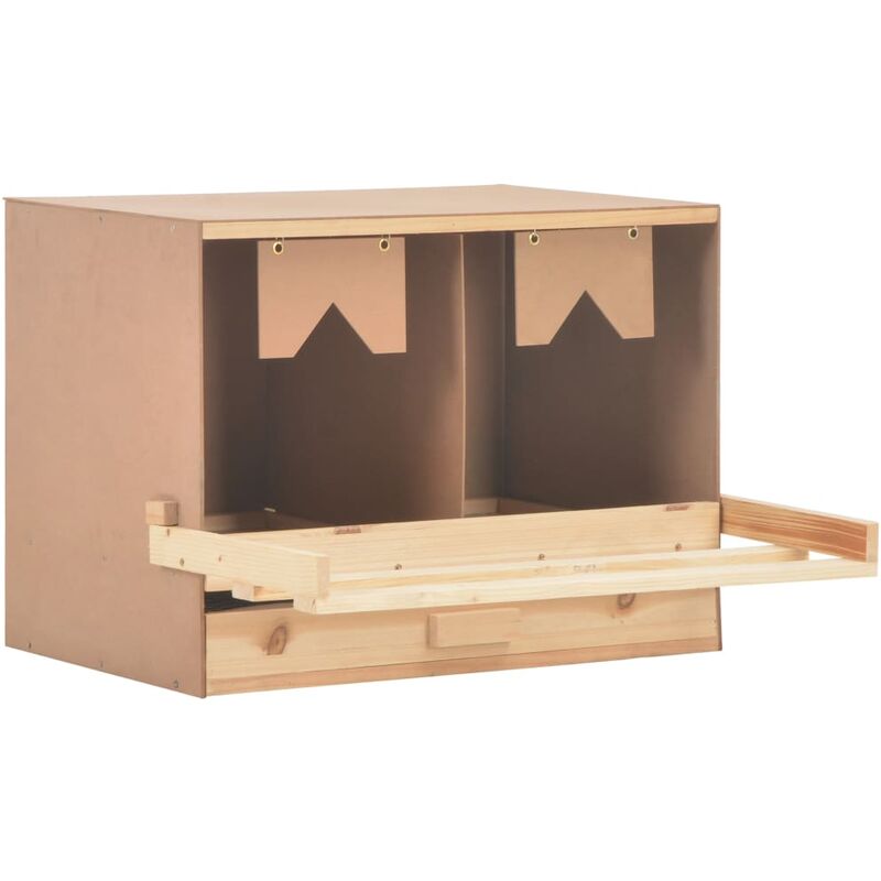 Descripción ¡Este ponedero proporcionará a sus gallinas un lugar cómodo y protegido para poner sus huevos! Los 2 espaciosos compartimentos permiten que 2 gallinas se acomoden y pongan huevos. Los huevos caerán suavemente por los agujeros del suelo e irán a parar al cajón de debajo, por lo que recoger huevos será fácil. La capa inferior extraíble le permite limpiar con facilidad. Los ponederos se pueden plegar para evitar que se posen por la noche. El tejado plano resulta cómodo para que otras gallinas se asienten y también le permite apilar varios nidales. Puede echar un vistazo en nuestra tienda si busca nidales con tejado inclinado. Hecho de madera maciza de pino y MDF, el ponedero para aves ha sido concebido para durar. El nidal es fácil de montar. Especificaciones: Color: Marrón y color de madera natural Material: Madera maciza de pino + MDF Dimensiones: 63 x 40 x 45 cm (ancho x profundo x alto) Para pollos grandes Con 2 compartimentos Ponedero plegable Capa inferior extraíble