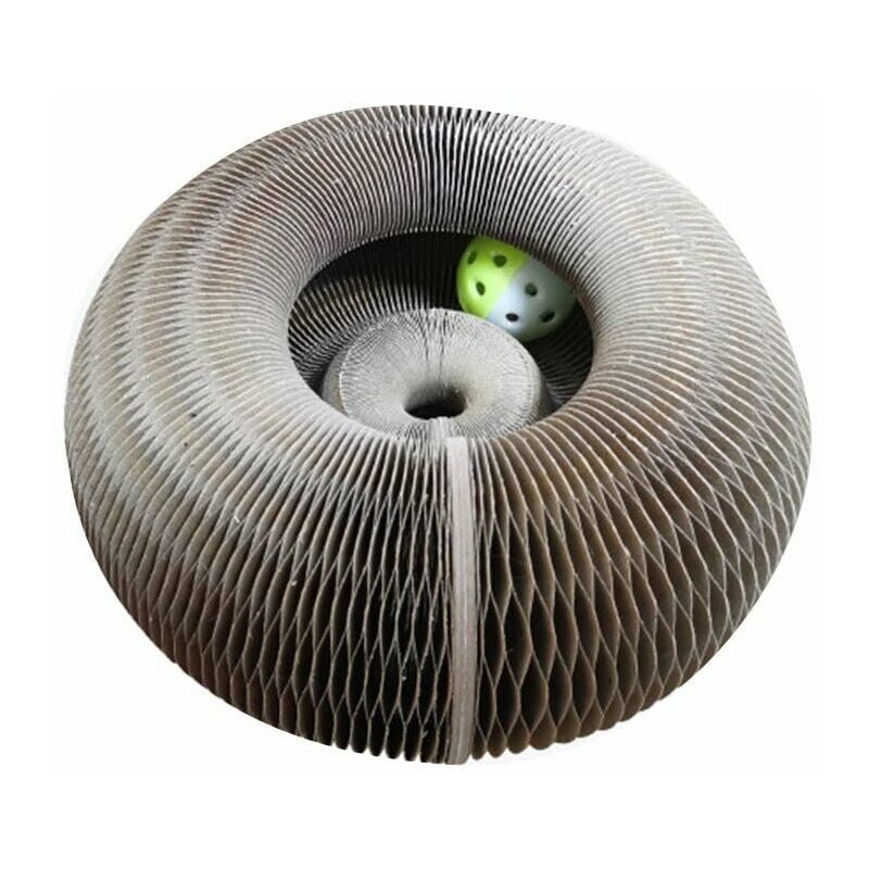 MULTIFUNCIONAL: Con bola de campana redonda incorporada en el medio del raspador con un agradable tintineo al rodar. Sirve tanto como rascador como para descansar para sus gatos, proporcionando un entorno c½modo para jugar y dormir. DURADERO Y DENSO: Fabricado cortando y pegando a mano en papel corrugado ecol½gico y de alta densidad, resistente a los araÏazos agresivos. M‚LTIPLES BENEFICIOS: DiseÏado para satisfacer el instinto de rascado de los gatos, ayudando a aliviar el estr?s y aumentar la actividad fsica, brindando a sus amados gatos garras saludables. PROTEJA LOS MUEBLES: Despierte el inter?s de los gatos por las garras, reduzca el daÏo de los gatos en el hogar, proteja efectivamente sus muebles. NOTA: Mantenga esta tabla para rascar lejos del fuego y el agua. TamaÏo: Desplegado: 9.4″ (diÿmetro) x 3.9» (altura) ; Pliegue: 4.6″ x 4,2″ x 3.4′.