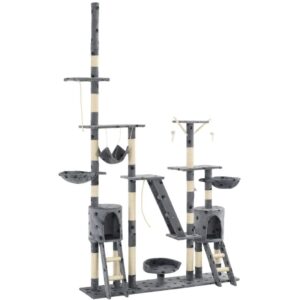 ¡Regale a sus amigos felinos un poco de lujo con nuestro rascador para gatos con múltiples características! Este rascador de diferentes alturas para gatos, con una estructura sólida cubierta de felpa suave y agradable, es el sitio perfecto para que sus gatos arañen, escalen, se encaramen, se escondan y descansen. Sus amigos felinos pueden afilar sus garras en los postes rascadores envueltos en cuerda de sisal, que proporciona una salida saludable para sus instintos de rascado. También disfrutarán persiguiéndose unos a otros mientras saltan de un lado a otro de este divertido centro de juegos. En la parte superior del rascador, hay juguetes colgantes que atraerán a los gatos curiosos. Cuando se hayan divertido lo suficiente, a sus amiguitos les encantará descansar en las plataformas superiores, donde tienen una mejor vista. También pueden esconderse en la acogedora casa para echar una siesta o en los túneles. Con todas estas divertidas características, ¡esta casa de juegos para gatos