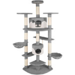 Un ÿrbol rascador es un ?xito para cualquier gato. Con un ÿrbol rascador pueden afilar sus garras y tambi?n usarlo para dormir o descansar. Los gatos son animales curiosos a los que les gusta tener todo vigilado, y un ÿrbol es perfecto para no perder nada de vista. Titulo 2 casetas bicolor para gatos Varias alturas 2 nidos basculantes Cuerda para jugar 3 plataformas para descansar El ÿrbol destaca por su acabado de calidad superior y su robusta estructura Protecci½n antivuelco para mÿxima seguridad Color: gris/blanco Detalles t?cnicos Medidas totales: 204 cm alto, 68 cm fondo, ancho variable por nidos basculantes de 103 – 140 cm Base suelo: 83 cm ancho, 68 cm fondo Diÿmetro nidos: 36 cm Plataformas: 30 x 30 cm Diÿmetro columnas de sisal: aprox. 7,5 cm Entrada caseta superior: 17 x 21 cm Entrada redonda caseta inferior: 13 cm diÿmetro Peso: 19,5 kg Materiales: Tablero DM, sisal, tubo de cart½n, felpa Componentes del envi½ 1 ÿrbol rascador para gatos Vdeos Los clientes tambi?n estaban