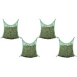Descripción Este conjunto de 4 resistentes redes para heno es ideal para alimentar a tus caballos o ponis. Las mallas, finamente tejidas, ralentizan el ritmo de alimentación de los caballos, mejorando su digestión y reduciendo asimismo los desperdicios. La entrega incluye 4 redes para heno. Especificaciones: Color: Verde Material: 100% PP Dimensiones totales: 0,9 x 1 m (alto x ancho) Forma: Cuadrada Dimensiones de la red: 45 x 45 mm Grosor de la cuerda: 3 mm Resistente a la intemperie La entrega incluye 4 redes para heno Material: Polipropileno: 100%