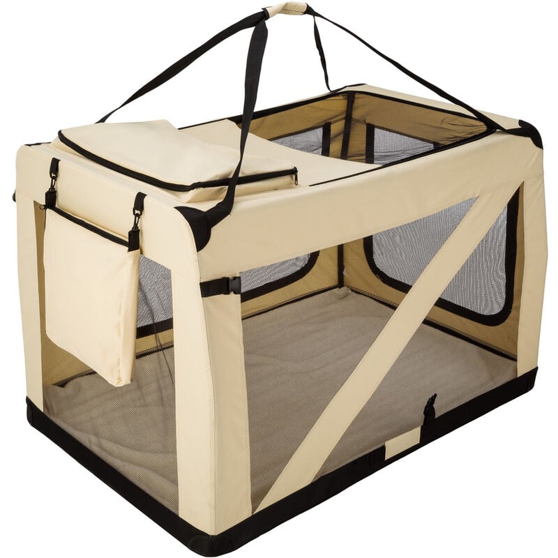 El transportn plegable es perfecto para que su mascota duerma o descanse. Se monta rÿpidamente encajando las barras de metal, y es estable y seguro. Titulo Plegable, se monta y desmonta rÿpidamente Compacto Perfecto para viajar Base con extrable y lavable Ventilaci½n ½ptima gracias a los laterales de malla 3 aperturas con cremallera (parte superior, frontal y lateral) Los laterales de malla pueden enrollarse y sujetarse con velcros para mantenerlos abiertos 2 prÿcticos bolsillos Doble asa con cierre de uni½n de velcro Fÿcil de limpiar Color: beige Detalles t?cnicos Medidas totales (largo x ancho x alto): aprox. 122 x 79 x 78,5 cm Dimensiones interiores (largoxanchoxalto): aprox. 121,5 x 78,5 x 78 cm Medidas plegado (largo x ancho x alto): aprox. 122 x 79 x 11 cm Apertura lateral ancho (largo x ancho): 89 x 38 cm Apertura lateral estrecho (largo x ancho): aprox. 50 x 49,5 cm Apertura superior (largo x ancho): aprox. 69 x 45 cm Bolsillo superior (largo x ancho x alto): aprox. 37 x 27