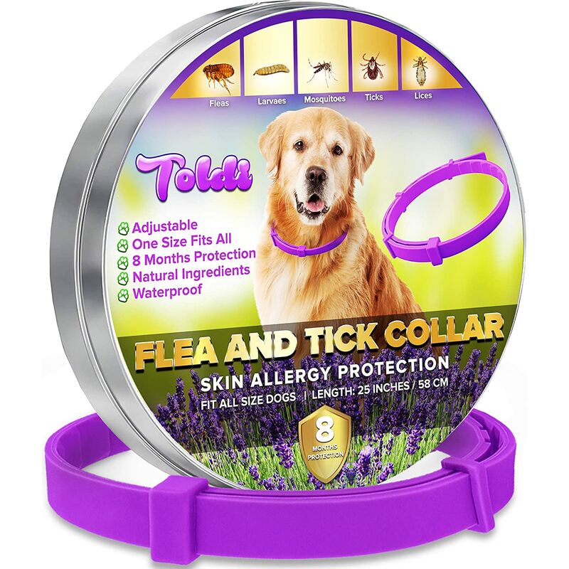 DISPOSITIVO EFECTIVO PARA EL CONTROL DE PULGAS: este poderoso collar antipulgas para perros ha sido diseÏado para proteger a su mascota de pulgas, piojos, garrapatas, mosquitos y larvas. Gracias a ?l, tu amigo de cuatro patas no serÿ molestado por ningœn insecto. PROTECCI…N DE OCHO MESES – Con nuestro collar antipulgas, y durante un mÿximo de ocho meses, tienes la garanta de que tu perro estÿ perfectamente protegido y que no volverÿ a casa acompaÏado de visitas no deseadas. INGREDIENTES NATURALES – Nuestro collar antipulgas contiene aceites esenciales que se difunden en pequeÏas cantidades, no t½xicos, sobre el pelaje y la piel de tu perro. Los principios activos actœan como un eficaz tratamiento no qumico para pulgas y garrapatas. AJUSTABLE Y C…MODO – Nuestro collar antipulgas para perros pequeÏos, medianos y grandes mide 58 cm y se puede ajustar en tan solo unos segundos . C½modo, no entorpece los movimientos de tu mascota. RESISTENTE E IMPERMEABLE – Este collar antipulgas para