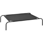 Nuestra cama elevada para perros proporcionará a tu mascota un lugar acogedor para descansar o relajarse. Adecuado para uso en el interior y exterior Esta cama para mascotas tiene una estructura de acero con recubrimiento en polvo, lo que le permite ser considerablemente estable y segura. La malla de textileno resistente a los rayos UVA y a la intemperie ofrece una buena transpirabilidad y, al mismo tiempo, repele la humedad, el moho, las bacterias y el olor, proporcionando una superficie limpia e higiénica para tus perros. Además, el tejido de textileno es fácil de limpiar con un paño húmedo. La cama para perros es ligera y fácil de montar, lo que la convierte en una cama para perros perfecta para viajar. Color: Negro Material: Textileno y acero con recubrimiento de polvo Dimensiones: 90 x 50 x 20 cm (largo x ancho x alto) Capacidad de carga estática: 5-10 kg Resitente a la intemperie y a los rayos UV Transpirable Fácil de limpiar Material: Poliéster: 30%, PVC: 70% SKU: 170661
