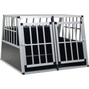 Esta jaula de perro contribuye a un viaje seguro y cómodo para su perro y para usted. Es adecuada para el uso en el maletero de su coche. Esta casa de perro está hecha de aluminio y MDF, que es duradero y fácil de mantener. Nuestra jaula está diseñada con juntas de plástico en las esquinas para evitar cualquier lesión en su mascota. La innovadora construcción de la caja asegura que su perro pueda mirar a su alrededor y pueda respirar aire fresco. El diseño de puerta doble hace que sea más fácil entrar y salir. Nuestra jaula es ligera y fácil de transportar en su coche. Este artículo es fácil de montar. Advertencia: Aconsejamos medir su coche para evitar una situación en la que la jaula del perro no quepa en el coche. Color: Plateado Material: Aluminio y MDF Dimensiones: 89 x 69 x 50 cm (anchura x profundidad x altura) Ligero y fácil de transportar Con juntas de plástico en las esquinas Adecuado para el uso en el maletero del coche Presenta 2 puertas SKU: 170667