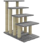 Este árbol para gatos es el refugio perfecto para que tus gatos rasquen, trepen, se posen, se escondan y descansen. Les da a tus gatos la oportunidad de estirarse y hacer ejercicio, especialmente en los fríos meses de invierno cuando están atrapados en el interior. Tus amigos peludos pueden afilar sus garras en los postes rascadores envueltos en cuerda de sisal, lo que proporciona una salida saludable para sus instintos rascadores. Además, también disfrutarán persiguiéndose unos a otros mientras saltan de un lado a otro en este divertido centro de juegos. Cuando hayan disfrutado de suficiente tiempo de juego, a tus pequeños amigos les encantará descansar en las plataformas superiores donde tienen una mejor vista. También se puede utilizar como escalera para que el gato suba a una cama alta o a un sofá. Con todas estas divertidas características, ¡esta rascador se convertirá en el sitio preferido de sus peludos amigos! Color: Gris claro Material: Madera de ingeniería, felpa, sisal